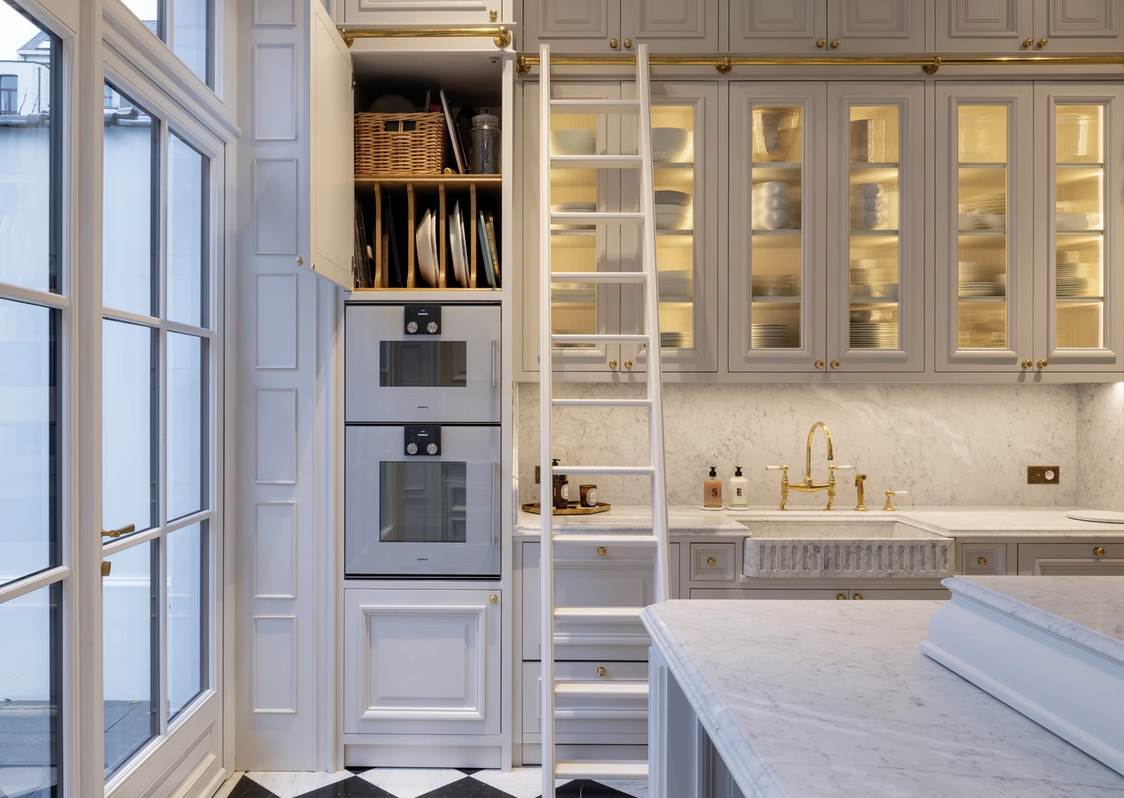 Moulded and carefully crafted cabinets, porcelain sinks: every element respects the classic aesthetic while incorporating modern comfort.