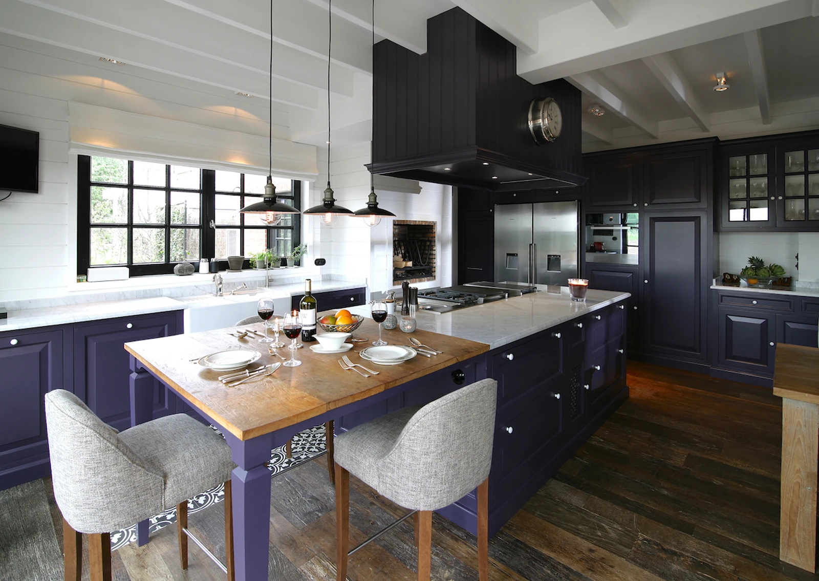2. Éléments Traditionnels : Des armoires en bois sculpté, des éviers en porcelaine et des cheminées sont des éléments emblématiques des cuisines rustiques.